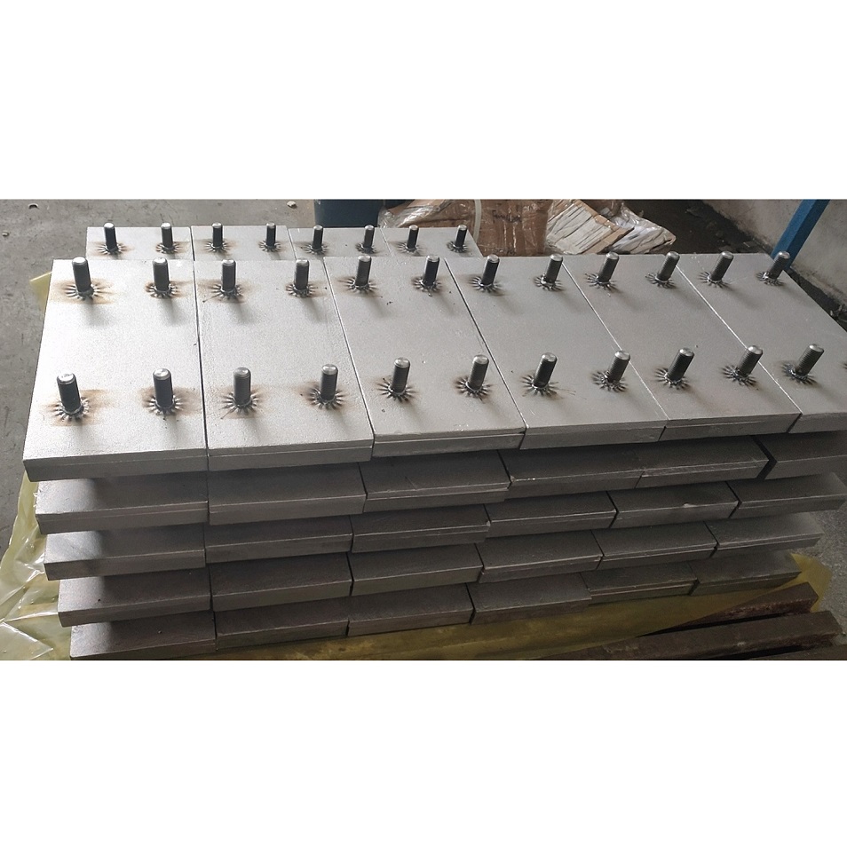 Laminated wear blocks are unique and excellent, in that they have extremely wear-resistant quality and they are weldable, this material is a combination of high chrome white iron metallurgically bonded to a mild steel backing plate through a vacuum brazing process, the high chromium white iron has an extremely high hardness of brinell 700HB (63HRC) and mild steel backing plate makes them weldable and good impact resistance. Typical products including chocky bar, wear button, wear strips, wear plate, shredder hammer tips, and much more other wear blocks, they are available both in standard shapes and also customized sizes.